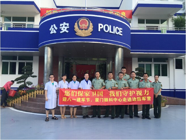 為迎接中國人民解放軍建軍88周年,秉著每年建軍節(jié)為官兵眼體檢的傳統(tǒng),7月30日下午,廈門眼科中心眼表與角膜病專家一行7人專程到思明區(qū)曾厝垵邊防所,開展健康咨詢、義診活動(dòng),并為邊防官兵贈(zèng)送了眼藥水。
