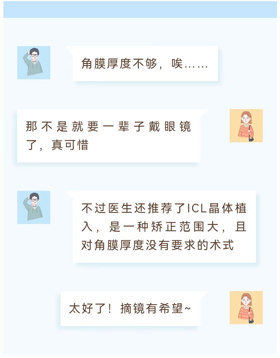 ? 對于一些角膜較薄或者因為干眼癥不適合做激光近視手術的近視患者,也可以考慮ICL晶體植入術。