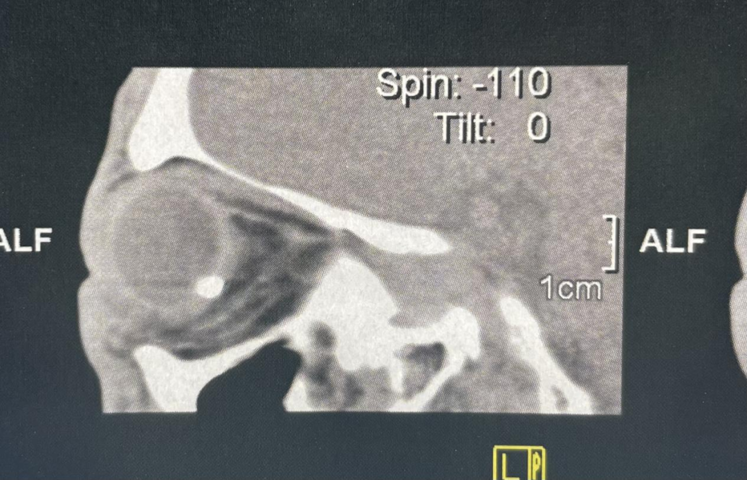 送抵廈門眼科中心時,陳先生左眼已完全喪失視力,還伴有明顯的枕后疼痛癥狀,情況十分危急。當(dāng)日急診醫(yī)生立即為其展開全面檢查,檢查結(jié)果令人揪心:入眼異物位于靠近眼球后壁的眼窩深處,不僅緊鄰顱腦,還與眼底視神經(jīng)“近在咫尺”。這個特殊位置讓手術(shù)團隊面臨嚴(yán)峻挑戰(zhàn),如果在取出過程中出現(xiàn)任何意外,損傷視神經(jīng),陳先生的左眼將面臨永久性失明的嚴(yán)重后果。