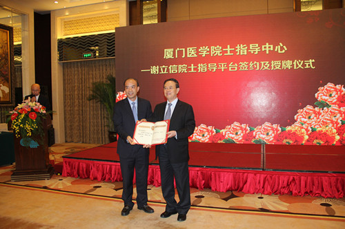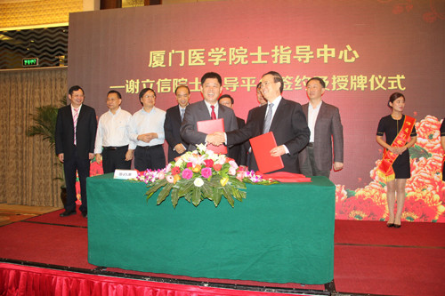 廈門(mén)市衛(wèi)生計(jì)生委副主任吳再陽(yáng)與謝立信院士共同簽署協(xié)議