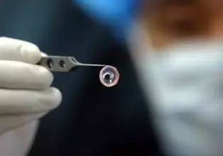 人工角膜是用醫(yī)用高分子材料制成的類(lèi)似人體角膜的產(chǎn)品,人工角膜一般包括光學(xué)鏡柱和周邊支架兩部分。光學(xué)鏡柱是用光學(xué)特性?xún)?yōu)良、物理化學(xué)性質(zhì)穩(wěn)定的透明材料制成,用以替代病變后阻礙眼球光學(xué)通路的渾濁角膜;周邊支架相當(dāng)于連接光學(xué)鏡柱和周邊組織的橋梁,故而要求具有良好的組織相容性。