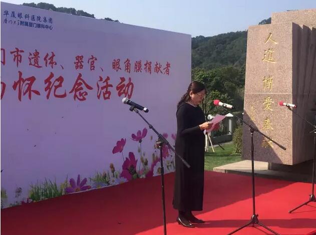 廈門大學(xué)附屬廈門眼科中心是福建省眼角膜捐獻(xiàn)指定的接收機(jī)構(gòu)。廈門大學(xué)附屬廈門眼科中心黨委書記陳逸恬在緬懷儀式上致辭,表達(dá)對生命的理性思考,對捐獻(xiàn)者偉大人格的崇敬之情。同時希望“人道、博愛、奉獻(xiàn)”的紅十字精神越來越被廣大愛心市民所接受和推崇,也希望更多的角膜盲患者能重獲光明,開啟新的生活。
