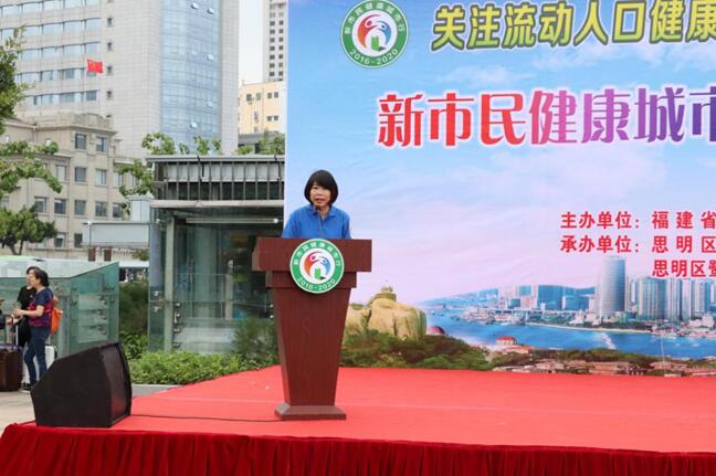 思明區(qū)衛(wèi)生和計(jì)劃生育局劉蓓局長(zhǎng)宣讀《流動(dòng)人口健康促進(jìn)倡議書(shū)》