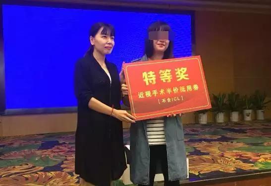 活動當天,前來參加近視公益講座的青年朋友們還參加了現(xiàn)場的抽獎活動。早早從龍巖特意趕來參加活動的盧小姐幸運的抽中了本次活動的特等獎——近視激光手術半價。廈門大學附屬廈門眼科中心副總經理姚鄭玲玲親自為其頒獎。