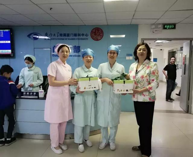 5月12日上午,廈門大學(xué)附屬廈門眼科中心工會(huì)主席陳逸恬、護(hù)理部主任許春麗及華廈眼科集團(tuán)護(hù)理管理中心洪清配業(yè)務(wù)副院長一行專程前往各科室,慰問正在臨床一線辛勤工作著的護(hù)士,為大家送上節(jié)日蛋糕,送上節(jié)日的問候和祝福。