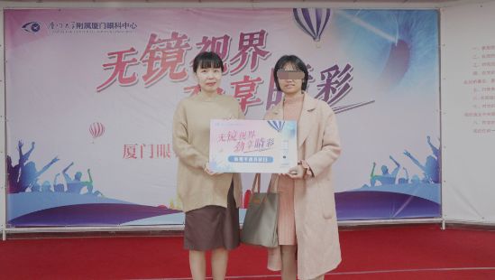 ▲廈門眼科中心總經(jīng)理姚鄭玲玲與獲獎(jiǎng)?wù)吆嫌?/div>