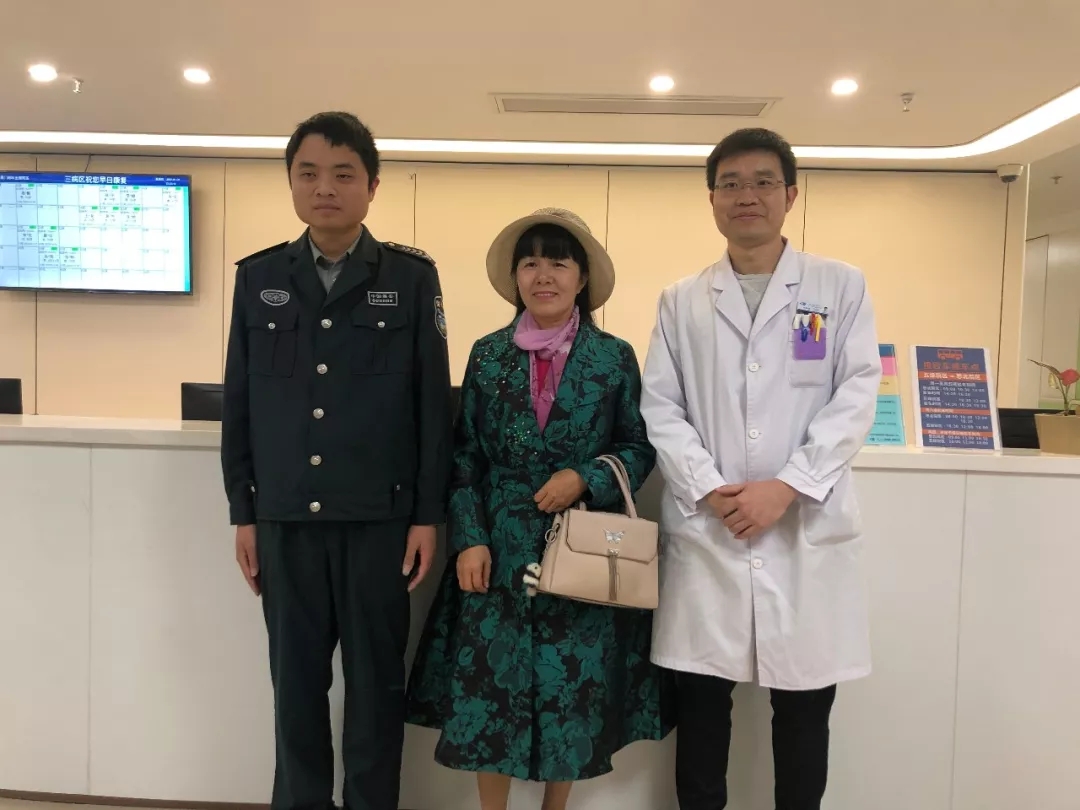 9日下午,故事里的主人公張瓊花女士特地從泉州趕回廈門,向廈門大學(xué)附屬?gòu)B門眼科中心保安部巡邏崗保安萬(wàn)志豪、眼外傷??评詈2ú┦勘硎靖兄x。