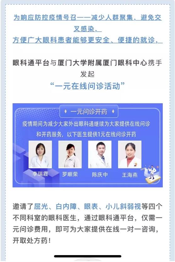 在廈門眼科中心斜視與小兒眼科??圃\室,潘美華教授:“這個疫情期的寒假,孩子們只能宅在家里,一定要注意孩子眼部衛(wèi)生與健康。要注意觀察孩子是否出現(xiàn)頻繁眨眼、揉眼睛、眼紅、眼痛、畏光流淚等異常情況,不要亂用眼藥水,應及時網(wǎng)上求醫(yī)詢診,必要時預約醫(yī)生來院就診。”作為廈門眼科中心第1黨支部書記,潘美華教授始終在一線詮釋一名支部書記的責任與擔當。