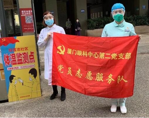 廈門眼科中心第二黨支部支部書記張美嫦:“越是困難的時候,越是體現(xiàn)支部戰(zhàn)斗堡壘作用的時候。”利用休息時間,張美嫦帶領支部黨員志愿服務隊,主動到社區(qū)一線體現(xiàn)志愿擔當。勸導訪客,為小區(qū)出人人員測量體溫,這支溫度計里有溫度也有愛心。