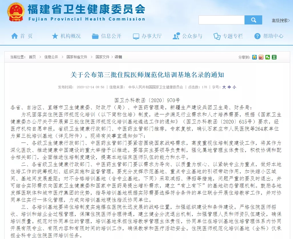 近日,根據(jù)國家衛(wèi)生健康委員會辦公廳、財政部辦公廳、國家中醫(yī)藥管理局辦公室聯(lián)合發(fā)布的《關于公布第三批住院醫(yī)師規(guī)范化培訓基地名錄的通知》(國衛(wèi)辦科教函[2020]970號)文件,確認廈門大學附屬廈門眼科中心成為第三批國家級住院醫(yī)師規(guī)范化培訓基地。