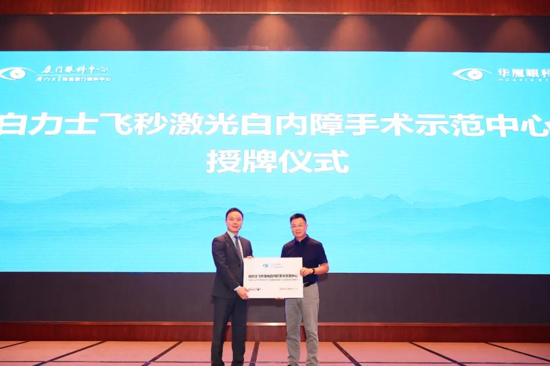 科技賦予光明力量,點(diǎn)亮高清美好生活。在論壇開(kāi)幕式上同步舉行強(qiáng)生眼力健“Catalys白力士”眼科飛秒激光治療機(jī)開(kāi)機(jī)發(fā)布會(huì)。強(qiáng)生眼力健中國(guó)區(qū)“飛秒激光眼表”事業(yè)部負(fù)責(zé)人宋漢崴為廈門眼科中心授予白力士飛秒激光白內(nèi)障手術(shù)應(yīng)用中心、白力士飛秒激光白內(nèi)障手術(shù)示范中心牌匾。“Catalys白力士”飛秒激光治療系統(tǒng)廣泛應(yīng)用于全球,該系統(tǒng)于6月在廈門眼科中心先行裝機(jī)落戶,此回正式開(kāi)機(jī),標(biāo)志著廈門眼科中心在白內(nèi)障無(wú)刀、智能新時(shí)代上再迎來(lái)新的里程碑。