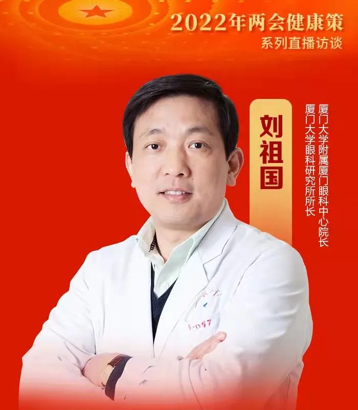 2022年3月,人民日?qǐng)?bào)健康客戶(hù)端再次推出“兩會(huì)·健康策”系列直播訪談節(jié)目眼健康專(zhuān)場(chǎng),特別邀請(qǐng)廈門(mén)大學(xué)眼科研究所所長(zhǎng)、廈門(mén)大學(xué)附屬?gòu)B門(mén)眼科中心劉祖國(guó)教授做客直播間,圍繞干眼在我國(guó)的高發(fā)現(xiàn)狀及規(guī)范化治療進(jìn)行深入探討,為干眼防控及管理體系建設(shè)獻(xiàn)計(jì)獻(xiàn)策。
